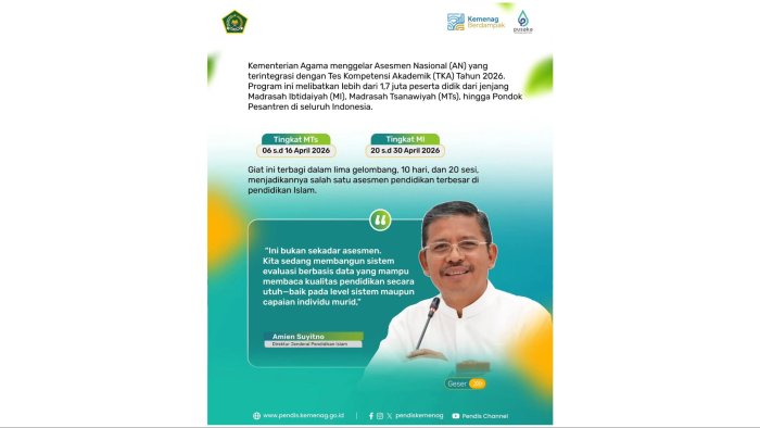 Muara Bulian, MTsN 1 (TIM WEB) --- Kementerian Agama Republik Indonesia resmi menggelar perhelatan besar asesmen pendidikan melalui integrasi Asesmen Nasional (AN) dan Tes Kompetensi Akademik (TKA) Tahun 2026. Agenda...