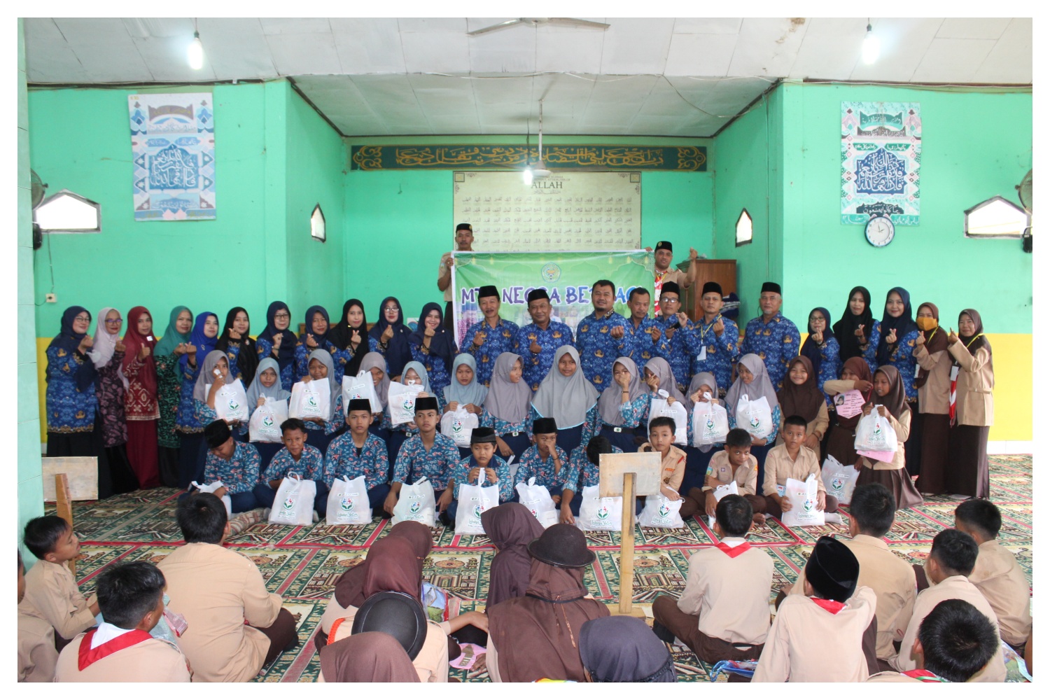 Menjelang acara dibubarkan, Kamad bersama Majelis Guru menyerahkan bingkisan yang berupa sembako dan alat tulis dalam rangka memperingati Lebaran Yatim Serentak Seluruh Indonesia dengan tema “Berbagi Cinta Berlimpah Berkahâ€. Yang menjadi program rutin Kementerian Agama. (17/07) (FD).
