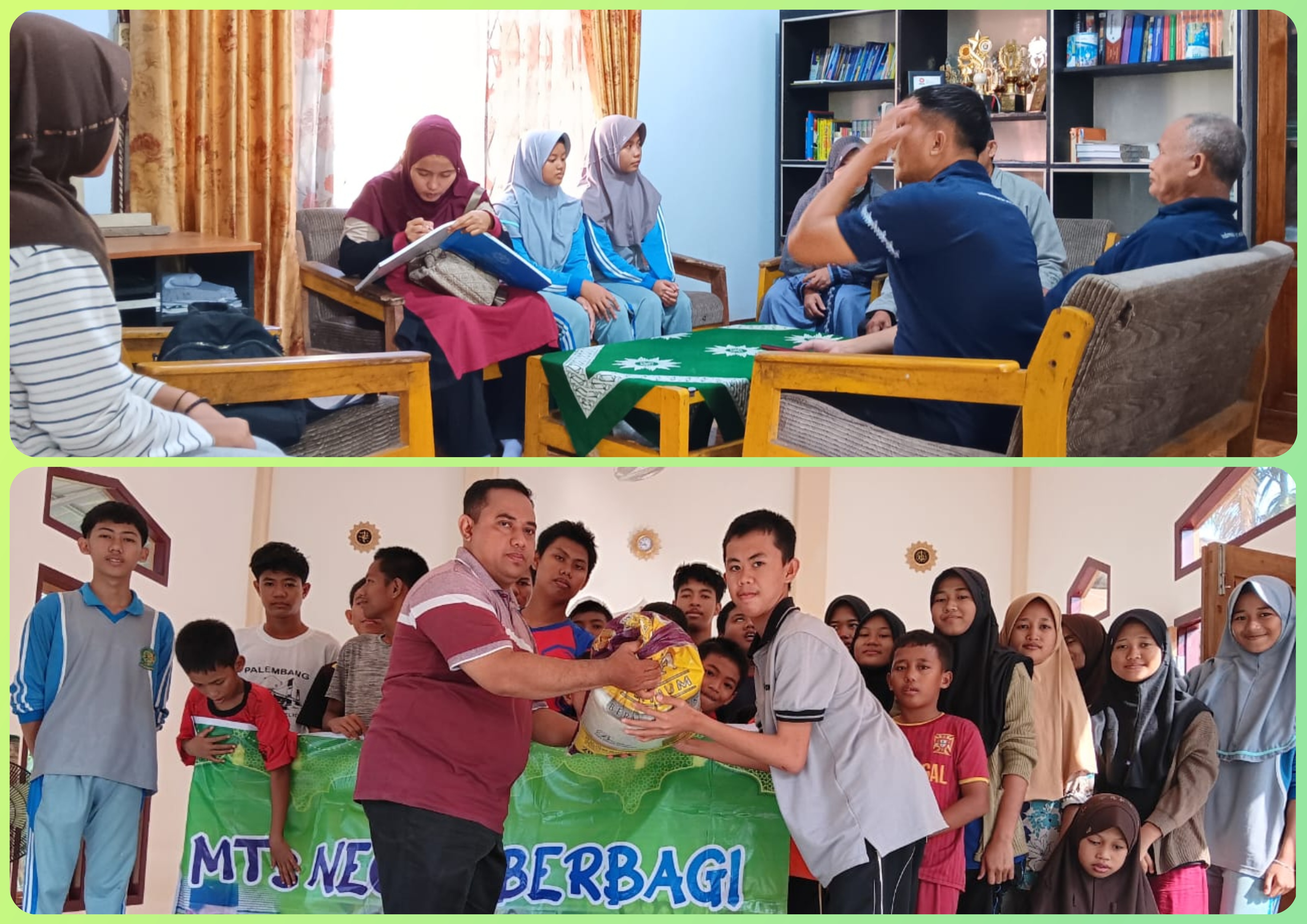 Muara Bulian, MTsN 1 (TIM Web) --- Madrasah Tsanawiyah Negeri 1 Batang Hari menggelar kegiatan Bakti Sosial “MTs NEGSA Berbagi†yang diinisiasi oleh Pihak Madrasah, Organisasi Siswa Intra Sekolah (OSIS) dan Peserta MATSAMA Tahun Ajaran 2024/2025. Kegiatan kepedulian sosial ini diadakan pada Sabtu 20 Juli 2024 di Panti Asuhan Disabilitas Tiara Bhakti dan Panti Asuhan Muhammadiyah Kab. Batang hari, sebagai bentuk nyata kepedulian madrasah terhadap sesama.