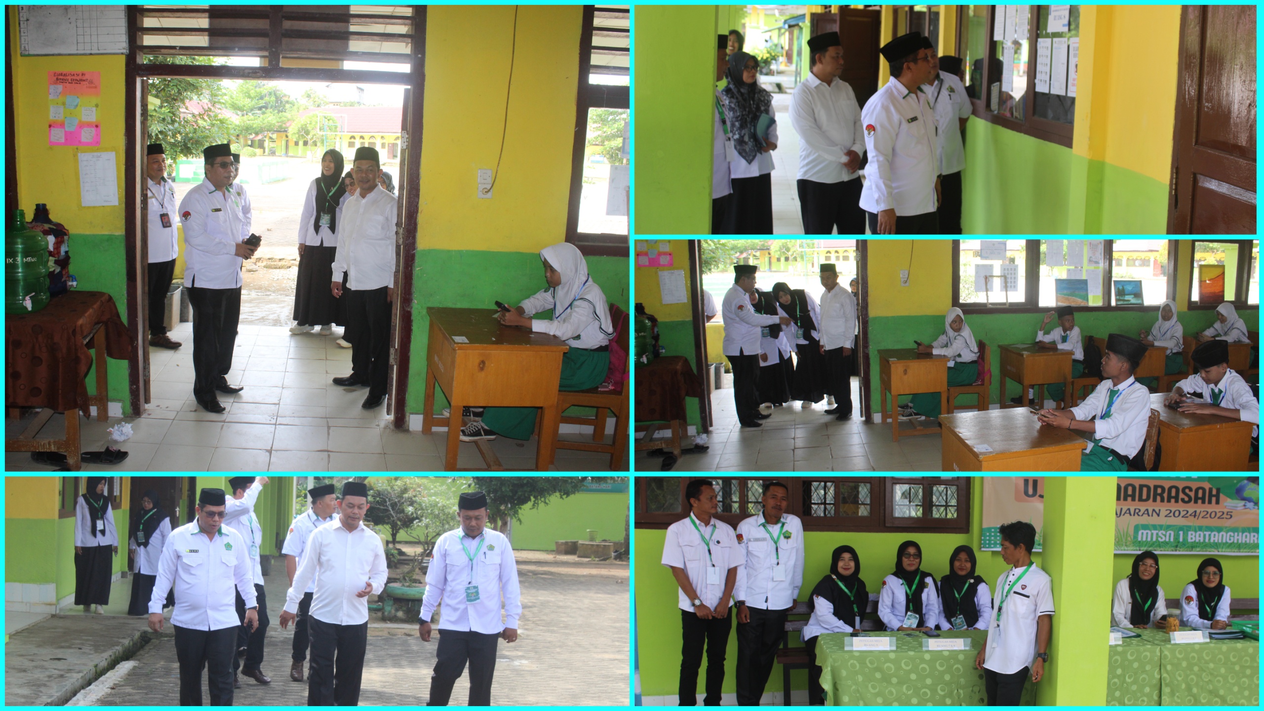 Dalam kunjungannya, Plt. Kepala Kantor Kemenag Batang Hari berinteraksi langsung dengan para siswa yang sedang mengikuti ujian, serta berdiskusi dengan kepala madrasah dan para pengawas ujian. Beliau meninjau berbagai aspek pelaksanaan UM, mulai dari kesiapan soal ujian, suasana ruang ujian, hingga penerapan protokol kesehatan.