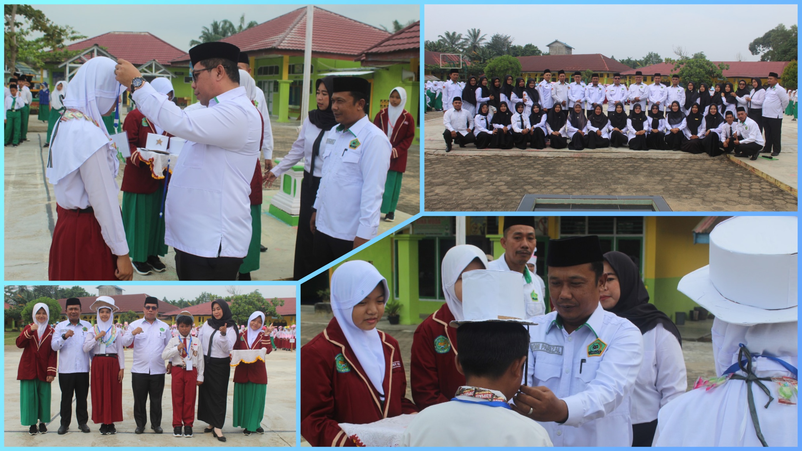 Pembukaan MATSAMA ditutup dengan penyematan tanda peserta secara simbolis kepada perwakilan siswa baru oleh Kepala Kemenag Batang Hari, menandai dimulainya rangkaian kegiatan perkenalan madrasah bagi siswa angkatan terbaru. (14/07) (FD)