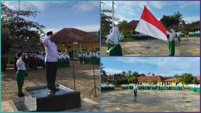 Muara Bulian, MTsN 1 (TIM Web) --- Pagi yang cerah di MTsN 1 Batang Hari diwarnai dengan pelaksanaan upacara bendera rutin hari Senin. Upacara yang berlangsung khidmat di lapangan sekolah ini dihadiri oleh seluruh siswa, guru, dan staf tata usaha. Upacara kali ini mengangkat tema yang relevan dengan perkembangan zaman: "Pemuda harus berintegritas dan inovatif."
