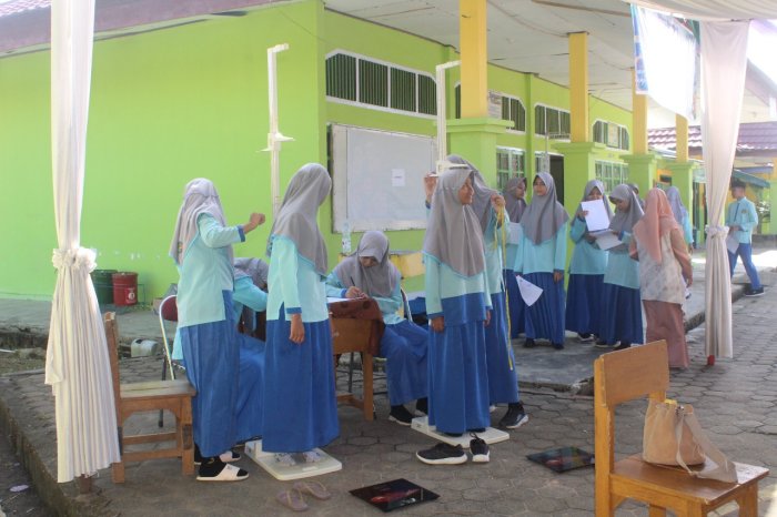 Muara Bulian, MTsN 1 (TIM Web) --- Puskesmas Batang Hari mengadakan serangkaian kegiatan layanan kesehatan di MTsN 1 Batang Hari. Acara yang bertempat di halaman dan ruang kantor sekolah ini mencakup beberapa program utama, antara lain Pelayanan Kesehatan Gigi (PKG), Pencegahan dan Pengendalian Penyakit Tidak Menular (PTM), Bulan Imunisasi Anak Sekolah (BIAS), Pemberian Tablet Tambah Darah (TTD), serta Program Upaya Berhenti Merokok (PUBM) dan Pelayanan Kesehatan Peduli Remaja (PKPR) di sekolah.