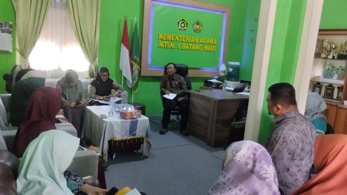 Muara Bulian, MTsN 1 (TIM Web) --- Madrasah Tsanawiyah Negeri (MTsN) 1 Batang Hari semakin serius dalam mewujudkan predikat Zona Integritas (ZI). Bertempat di ruang Kepala Madrasah, sebuah rapat sederhana digelar untuk pemantapan dan pengukuhkan tim koordinator persiapan penilaian ZI, Kamis (18/09/2025).