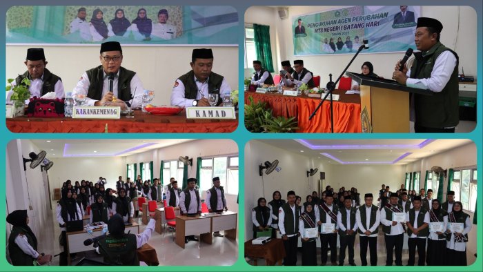 Kepala MTsN 1 Batang Hari, Bapak Doni Parizal, S.Pd., M.Pd., dalam sambutannya juga menyampaikan bahwa pemilihan kelima Agen Perubahan tersebut telah melalui proses seleksi ketat untuk memastikan mereka memiliki komitmen kuat dan gagasan inovatif dalam mendukung pembangunan ZI.