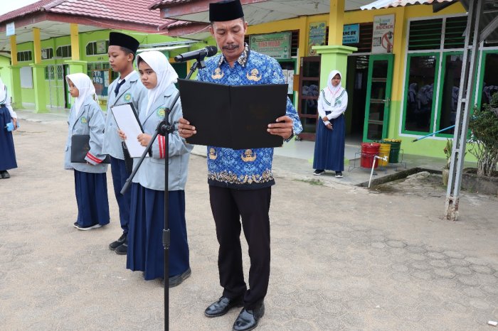 Kepala MTsN 1 Batang Hari, Bapak Doni Parizal, S.Pd., M.Pd., bertindak sebagai Pembina Upacara. Dalam amanatnya, Bapak Doni Parizal membacakan pidato dari Menteri Pemuda dan Olahraga, menekankan pentingnya semangat Sumpah Pemuda sebagai landasan untuk terus bergerak maju dan bersatu.