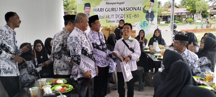 Penyerahan penghargaan berlangsung hangat dan penuh haru. Rekan-rekan guru turut memberikan apresiasi serta ucapan terima kasih atas kontribusi yang telah diberikan oleh Bapak Khotib selama ini.