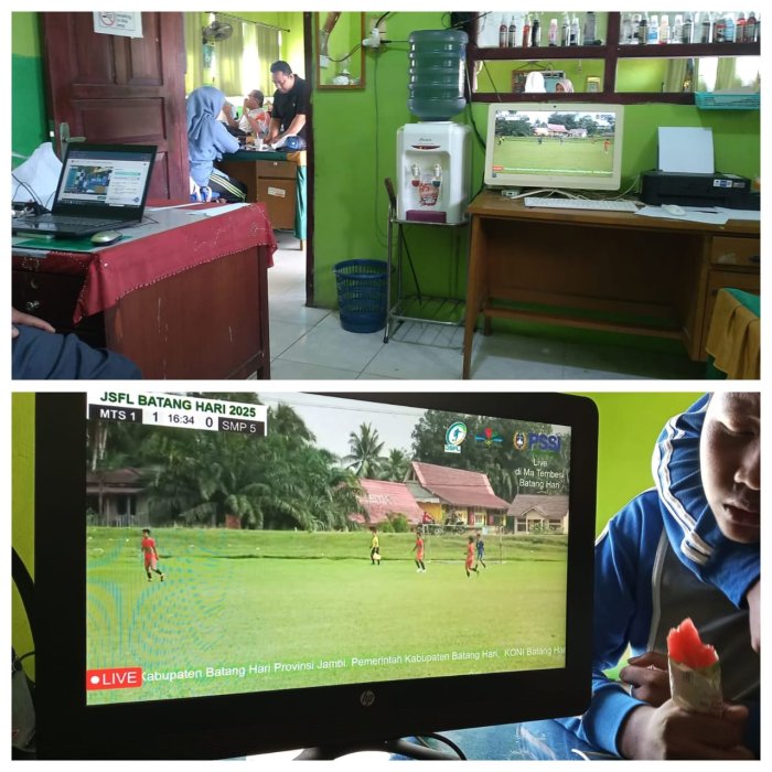 Muara Bulian, MTsN 1 (TIM WEB) --- Warga MTsN 1 Batanghari kembali menunjukkan kebersamaan dan dukungan penuh kepada tim sepak bola MTS Negsa FC melalui kegiatan nonton live bareng, sabtu (29/11). Meskipun proses belajar mengajar (PBM) sedang berlangsung sehingga tidak memungkinkan untuk hadir langsung di lapangan, semangat warga madrasah tetap tersalurkan lewat siaran langsung pertandingan.