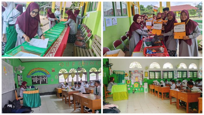 Para pengawas ruang terlihat aktif memantau jalannya ujian, memastikan siswa fokus pada pengerjaan soal dan tidak melakukan tindakan kecurangan.