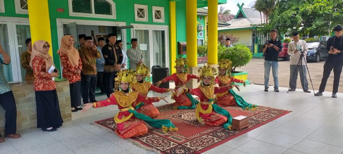 Muara Bulian, MTsN 1 (TIM WEB) --- Aura kemeriahan menyelimuti Kantor Kementerian Agama (Kemenag) Kabupaten Batang Hari pada hari Sabtu (20/25). Tim tari dari Madrasah Tsanawiyah Negeri (MTsN) 1 Batang Hari sukses membawakan Tari Sekapur Sirih sebagai prosesi penyambutan kehormatan dalam acara pembukaan Training of Trainer (TOT) Calon Mu'allim, sebuah program inovatif "Pelatihan 30 Menit Bisa Membaca Al-Qur'an".