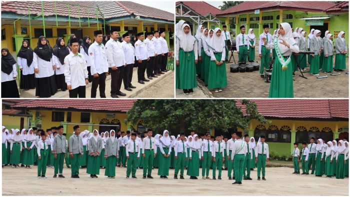 Muara Bulian, MTsN 1 (TIM WEB) --- Madrasah Tsanawiyah Negeri (MTsN) 1 Batang Hari kembali menggelar upacara bendera rutin hari Senin (12/01/2026) bertempat di lapangan utama madrasah. Upacara yang berlangsung khidmat ini diikuti oleh kepala madrasah Bapak Doni Parizal, S.Pd., M.Pd., seluruh majelis guru, staf tata usaha, serta ratusan siswa-siswi kelas VII hingga kelas IX.