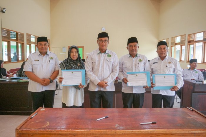 Kegiatan yang berlangsung khidmat ini dilaksanakan di Aula Kantor Kemenag Batang Hari pada Selasa, 13 Januari 2026. Prosesi ini disaksikan langsung oleh Kepala Kantor Kemenag Batang Hari, Bapak H. Zeifni Ishaq, M.H.I., serta jajaran pejabat di lingkungan Seksi Pendidikan Madrasah.
