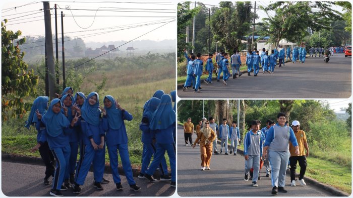Kepala MTsN 1 Batang Hari, Bapak Doni Parizal, S.Pd., M.Pd., yang turut serta dalam barisan jalan sehat, menyampaikan bahwa kegiatan ini adalah investasi kesehatan yang penting di tengah padatnya aktivitas akademik.