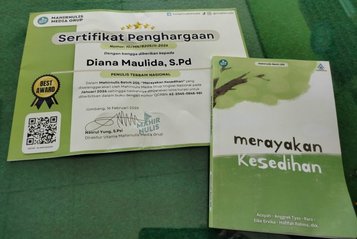 Prestasi tersebut diraih dalam ajang bergengsi Mahir Menulis Batch 205 bertajuk "Merayakan Kesedihan" yang diselenggarakan oleh Mahir Menulis Media Group pada Januari 2026 lalu.