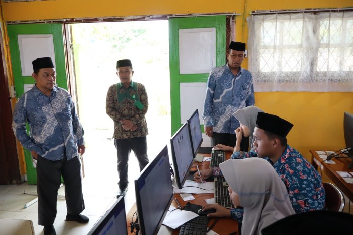 Dalam tinjauannya di beberapa ruang ujian, tim pengawas memantau langsung proses pengerjaan soal yang kini mengusung komposisi 70% soal pusat dan 30% soal daerah. Bapak Asmadi, S.Pd.I., M.Pd.I., mengapresiasi kesiapan panitia madrasah dalam mengelola waktu pengerjaan yang berdurasi 75 menit tersebut.